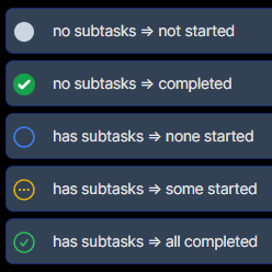 - An orange circle with an ellipsis indicates some subtasks have been started or completed but not all