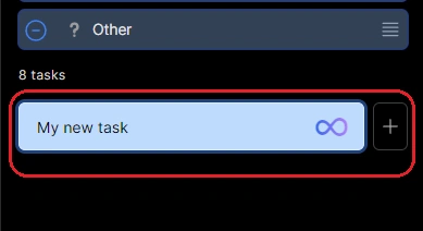 - "∞" adds the task to the current page immediately and breaks it down with AI (kb: ctrl+shift+enter)
