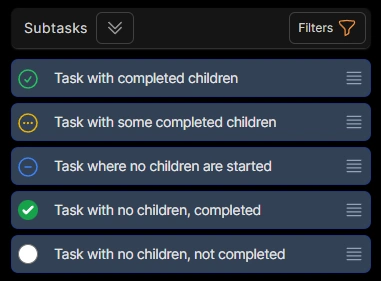 For tasks without subtasks, click the checkbox or press Spacebar to switch between ’Not Started’ and ’Completed’.